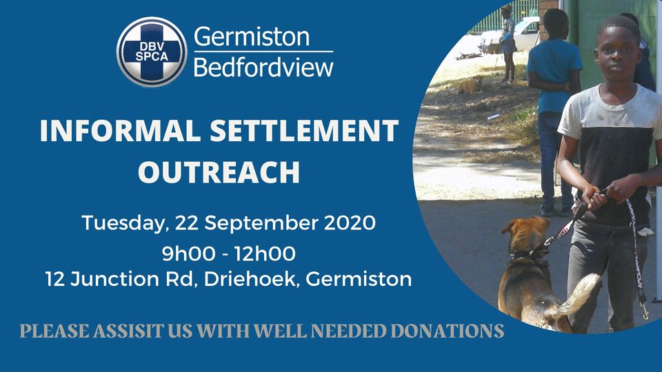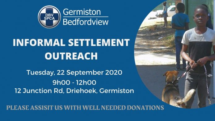 The Germiston Bedfordview SPCA will visit Marathon, Makausu and Rasta informal settlements as part of their outreach day, where they will provide primary healthcare to pet owners who cannot afford the services of private veterinarians.